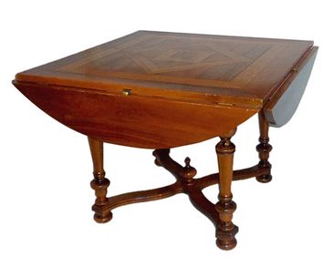 Vintage Thomas Newman solid wood parquetry 'square to round' drop leaf dining table.
